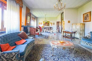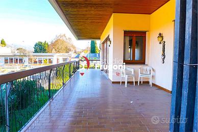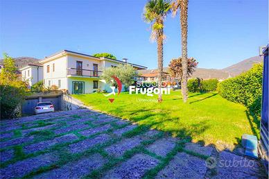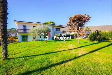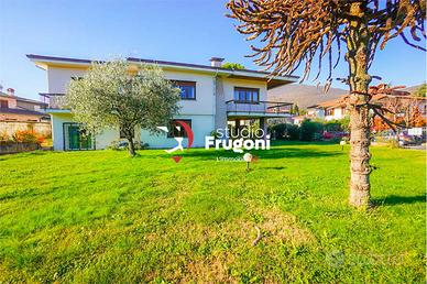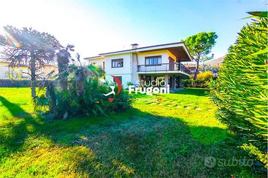 GAVARDO - Villa singola con ampio parco, composta al piano terra da appartamento recentemente ristrutturato con soggiorno, cucina due camere, due bagni, lavanderia e grande portico su giardino, al piano primo da salone con sala da pranzo di 57 mq su grande terrazzo, studio, tre camere di cui due su balcone e due bagni.