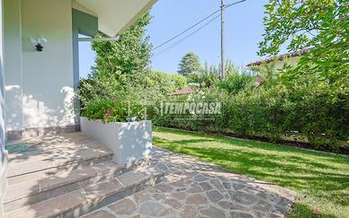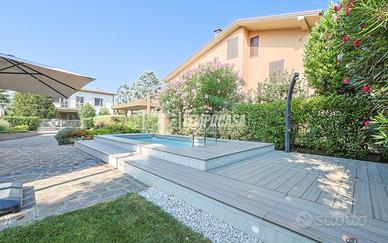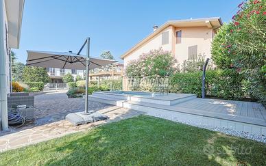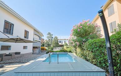 Il giardino privato di 300 mq, con piscina interrata, è perfetto per trascorrere piacevoli momenti all'aria aperta con amici e famiglia. Immagina le tue serate estive, rilassandoti a bordo piscina o organizzando barbecue.
