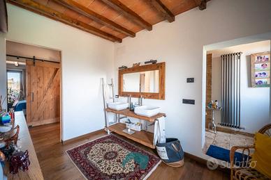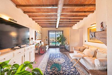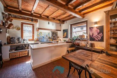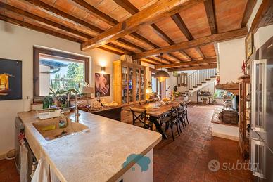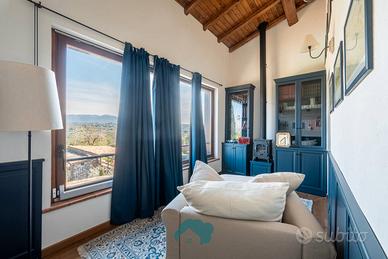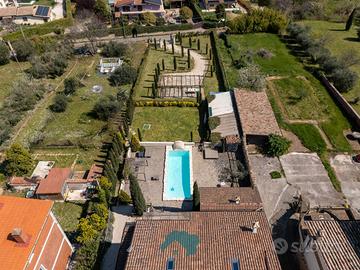 Cod. 00995 Nel suggestivo contesto di Zagarolo, in Via Prati di Mainello, Thinkhome propone in vendita una splendida villa unifamiliare di circa 270 mq, immersa nella tranquillità e nel verde, con terreno privato di 2.800 mq e piscina interrata di 11 x 4,5 metri con impianto a sale. La proprietà si distingue per uno stile rustico ed elegante, ispirato ai tipici casali toscani, totalmente ristrutturata nel 2020 con interventi importanti come il rifacimento completo del tetto, la realizzazione del cappotto termico su tutta la struttura e valorizzazione di materiali come pietra e travi in legno. L'ingresso al piano terra caratterizzato da una splendida pavimentazione in cotto toscano con riscaldamento a pavimento ,conduce in un ampio open space con cucina a vista e penisola in marmo, al centro dell'ambiente si trova un importante camino in pietra, elemento protagonista, che dona carattere e calore all'intera abitazione, zona salotto, valorizzata da una grande vetrata scorrevole che permette l'accesso diretto al portico e alla piscina, creando una continuità naturale tra interno ed esterno. Sempre al piano troviamo un bagno di servizio, due pratici ripostigli e un'ampia camera matrimoniale con bagno interno. Attraverso un'elegante scala in legno si accede al piano superiore, interamente dedicato alla zona notte, dove l'ambiente è reso caldo e accogliente dalla pavimentazione in vero parquet con riscaldamento a pavimento. Qui si sviluppano tre camerette, tutte con accesso diretto al balcone, oltre a una spaziosa camera padronale dotata di cabina armadio e bagno interno con doccia a pareti riscaldabili. All'interno di essa, trova spazio una suggestiva area relax, concepita come una veranda chiusa, caratterizzata da un'ampia vetrata con una piacevole vista panoramica. Questo ambiente, rifinito con eleganti boiserie blu e arricchito da una stufa a legna, rappresenta uno spazio intimo e riservato. L'esterno della villa si sviluppa su un curato giardino di circa 2.800 mq.