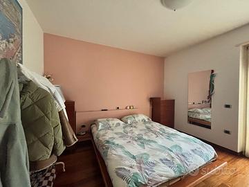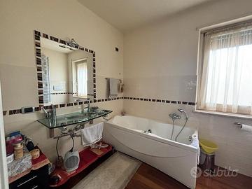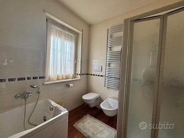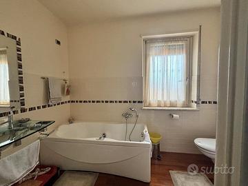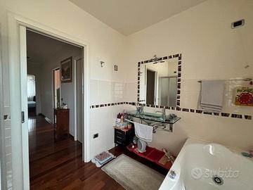 Il bagno con vasca idromassaggio e doccia diventa un piccolo angolo di relax quotidiano, mentre il grande armadio a muro rende tutto ordinato e funzionale.