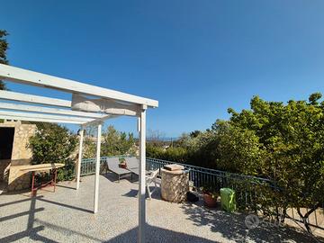 In zona collinare a Monopoli, proponiamo in vendita abitazione indipendente di circa 100 mq con splendida vista mare. La casa, in buone condizioni, è libera e subito disponibile. L'immobile è composto da ingresso su salone con camino, cucinino, tre camere da letto e un bagno. All'esterno troviamo un ampio spazio comodo, in parte pavimentato e in parte giardino con pineta, tutto completamente recintato. Presente anche una terrazza panoramica con vista mare e un forno esterno. Costruzione degli anni '90, dotata di fossa Imhoff. Soluzione ideale per chi cerca tranquillità in una contrada abitata e servita. APE in corso di rilascio.