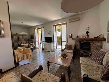 P.T : Soggiorno con camino, cucina abitabile, disimpegno, doppi servizi e tre camere;