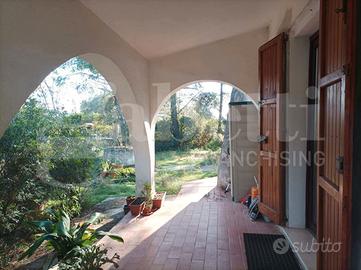 Ingresso su loggiato di circa 25 mq e giardino piantumato di 2000 mq.