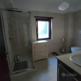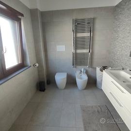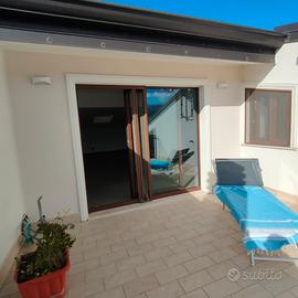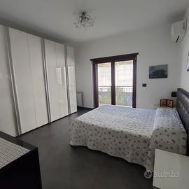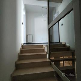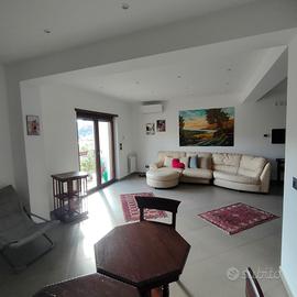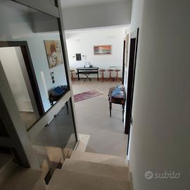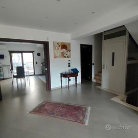 Panoramica villetta a schiera di nuovissima costruzione, su 4 livelli per complessivi mq. 350 c.a., composto p.t. ampio garage-cantina-taverna con cortile antistante, 1°p. zona giorno, ampio soggiorno, cucina-pranzo, bagno, lavanderia, balconi, ampio cortile a livello; 2°p. zona notte, tre camere, bagno, ripostiglio, spogliatoio-armadio, balconi; 3°p. ampio unico vano in parte mansardato, con bagno e veranda. Ottime condizioni e rifiniture, riscaldamento autonomo, aria condizionata, ascensore interno, autoclave, posto auto, tutti i confort. C. E: "B"